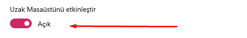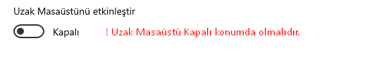 Merhabalar Değerli KO4FUN Oyuncuları, Sizlere bugün oyuna girişte yaşayabileceğiniz bazı hata ve çözümlerinden bahsedeğiz. 1.) Uzak Masaüstü Hatası Cheat Detected FFFFFFF6(-10) Çözüm : 1.) Başlat menüsünden "Ayarlar" sekmesine tıklıyoruz. 2.) Arama bölümüne "Uzak Masaüstü Ayarları" yazarak aratıyoruz ve çıkan sonuçlar içerisinden "Uzak Masaüstü Ayarları" sekmesine tıklıyoruz. 3.) "Uzak Masaüstü etkinleştir" bölümünü "Açık" konumundan "Kapalı" konuma getiriyoruz. 4.) "Uzak Masaüstünü etkinleştir" bölümü kapalı konumdayken oyuna giriş yapabilirsiniz.